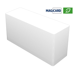 Ref. : E0001 Cartes ECO Magicard, 86x54 mm, 0.95mm - Lot de 500 <p><strong><span style="font-size:14pt;"><strong>Consommables certifiés Magicard®</strong></span><br /></strong></p> <p class="MsoNormal"><b>Ces cartes sont 100 % sans PVC</b>. </p> <p></p> <p class="MsoNormal">Elles sont fabriquées à partir de carton et de PLA (acide polylactique), un thermoplastique biodégradable et bio actif issu de ressources renouvelables (comme le maïs et la canne à sucre).</p> <p></p> <p class="MsoNormal">Elles ont un noyau à base de papier de 0,85 mm d'épaisseur, il s'agit donc de carton et les couches extérieures du carton sont recouvertes de PLA (acide polylactique). Chaque revêtement PLA a une épaisseur de 0,05 mm.</p> <p></p> <p class="MsoNormal"><b>L'épaisseur totale des cartes est de 0,95 mm</b>, calculée comme suit : 0,05 mm (PLA) + 0,85 mm (Carton) + 0,05 mm (PLA).</p> <p></p> <p class="MsoNormal">Ces cartes sont industriellement <b>biodégradables</b>. Cela signifie qu'elles se décomposent dans un environnement contrôlé.</p> <p></p> <p><br /><br /><strong><span style="font-size:14pt;"><strong>Ruban noir compatible avec les imprimantes à badges suivantes :</strong></span><br /></strong><br />Magicard 300<br />Magicard 600<br />Magicard E+<br /><br /></p> <p>Il est impératif d'utiliser les rubans couleur de <strong><a href="https://www.cardalis.fr/372-600" target="_blank" rel="noreferrer noopener">la gamme ME MAGICARD</a></strong> pour imprimer sur ce type de cartes.</p> En stock 95,60 € HT 114,72 € TTC Ajouter au panier